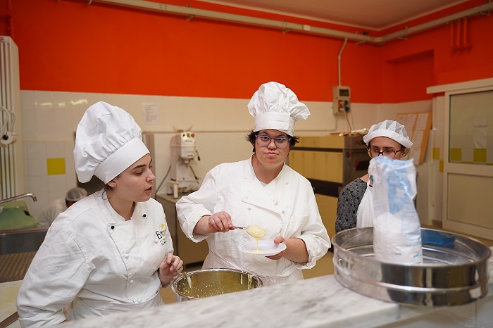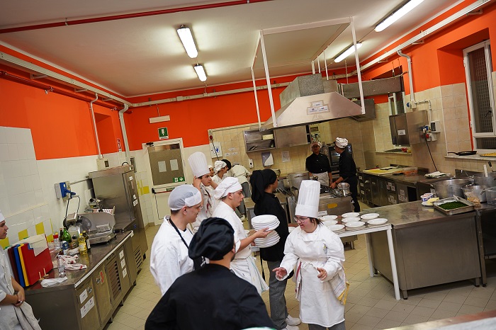 Bravissimi gli allievi del corso di ristorazione tenuto da EnAIP, giovani e capaci di creare uno splendido affiatamento con i ragazzi del nostro Centro Down che, per l’occasione, hanno dimostrato di saperci fare in cucina e… in sala! Cinque dei nostri hanno infatti lavorato ai fornelli e servito ai tavoli, in un’atmosfera di coinvolgimento e complicità che ha catturato tutti.